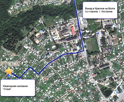 Автотранспортом: из Москвы по Ярославскому шоссе 330 км до города Кострома, далее: 30 км по Кинешемскому шоссе по направлению: посёлок Красное-на-Волге улица Украинская 25.